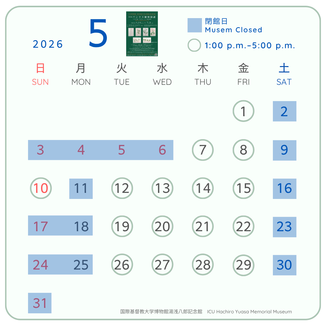 May 18 is the International Museum Day. It has been celebrated all over the world since 1977. The Yuasa Museum would like to welcome everyone to come and see the museum. From May 13 (Tue) to 16 (Fri) and 20 (Tue) to 24 (Sat), visitors will receive a free postcard!