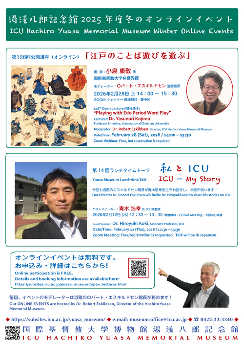 - [第9回湯浅記念館ランチタイムトーク(ゲストスピーカー:久保謙哉本学教授)]